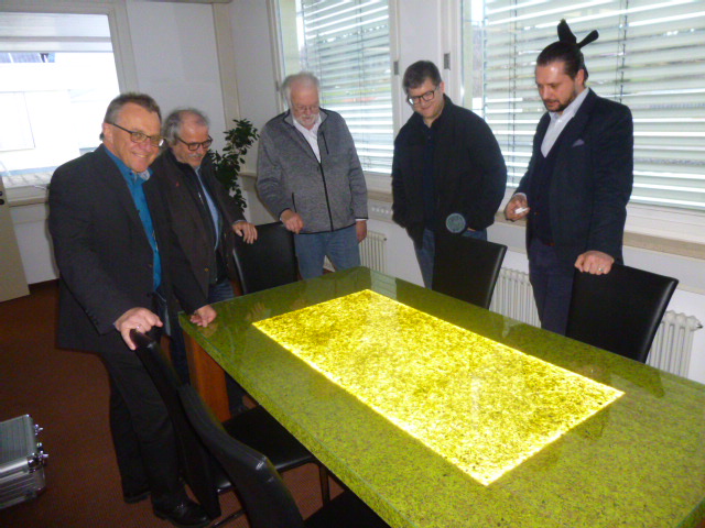Tief beeindruckt von dem Besuch des hochinnovativen Unternehmens Phoenico Design GmbH in Lindenberg waren die beiden Landtagsabgeordneten Thomas Gehring und Ulli Leiner, Bündnis 90 / DIE GRÜNEN, bei dem sie von Kreissprecher Christian Schabronath begleitet wurden.