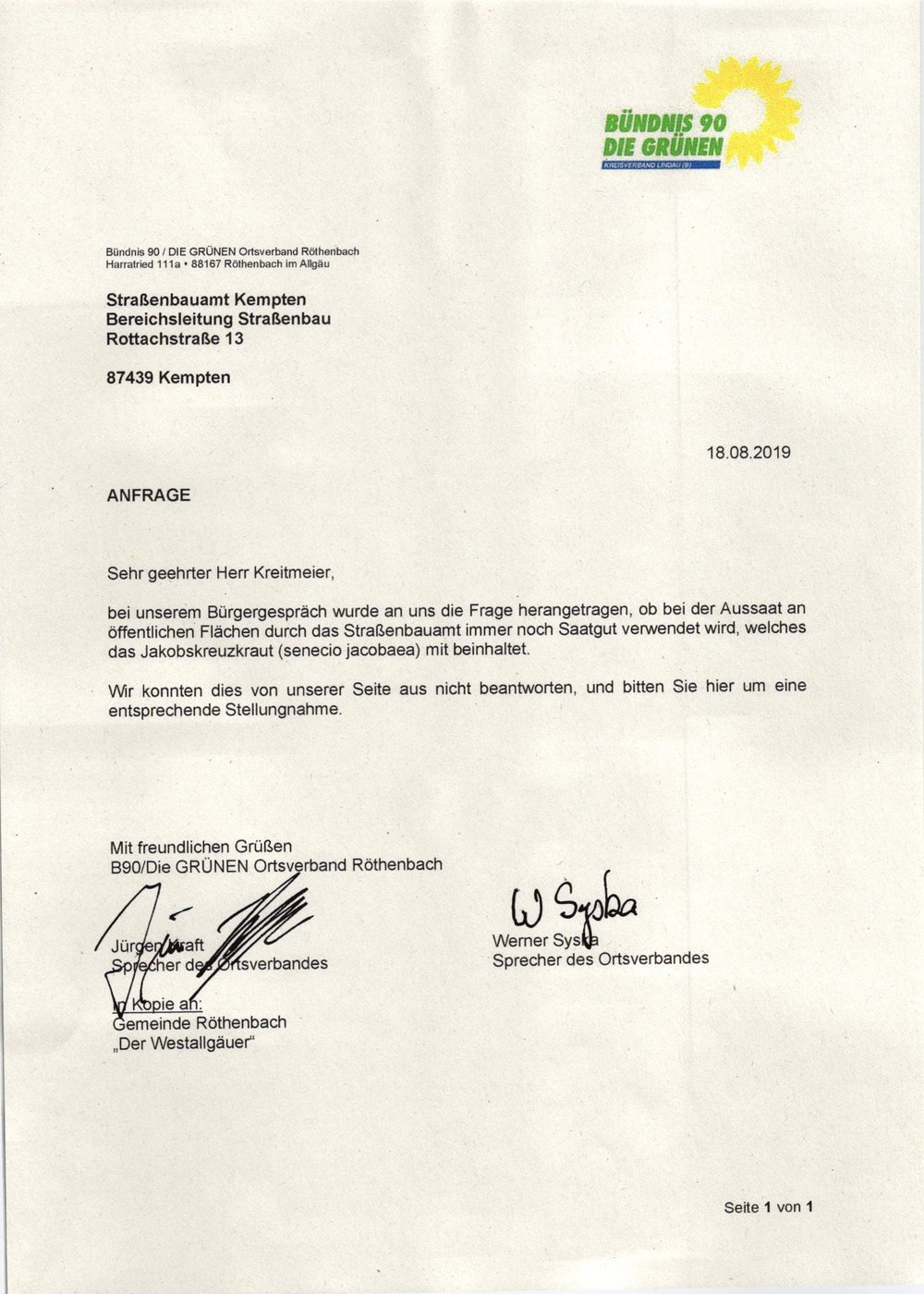 Jakobskreuzkraut: Anfrage ans Straßenbauamt Kempten