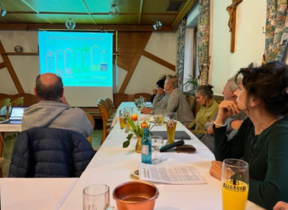 Unter diesem Titel fand der gut besuchte Grüne Monatstreff am letzten Sonntag in Lindenberg statt – ein Thema mit hoher Aktualität, fand doch zur selben Zeit der Koalitionsgipfel in Berlin u.a. dazu statt. Die bekannt gewordenen Pläne aus dem Hause Habeck hatten vielerorten Anlass zu Ängsten und Diskussion bis hin zur Skandalisierung des Themas geführt. So waren auch hier verunsicherte Leute gekommen, die Sorge vor gesetzlichen Vorschriften mit für sie nicht bezahlbaren Erneuerungen an Dämmung und Heizung ihres Hauses vorbrachten. Darauf wurde im Rahmen der Diskussion eingegangen. Zunächst aber berichtete die Klimamanagerin der Stadt Lindau, Danielle Eichler, von den Planungen für ein Nahwärmenetz auf der Insel Lindau, die den Sparbeschlüssen nicht zum Opfer gefallen und Teil eines umfassenden Klimaschutzkonzeptes sind. Dabei baut man auf Seewärme, was jedoch mit den anderen Anrainerstaaten abgestimmt sein muss. Vorreiter und damit sehr erfahren ist die Schweiz mit Anlagen z.B. im Thurgau und in Luzern. Die besonderen Probleme mit der historischen Substanz der Insel lassen aufwendige und langwierige Arbeiten erwarten, so dass gerade hier ein früher Beginn vordringlich erscheint.