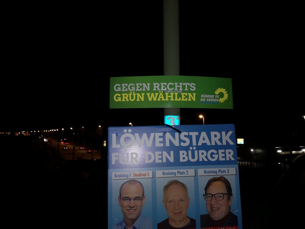 Wir sind der Meinung, daß es nicht er richtige Weg ist, Plakate anderer Parteien zu beschädigen oder zu entwenden, deshalb rufen wir auch unsere Sympathisant*innen (nicht nur vor der Kommunalwahl) dazu auf, keine Sachbeschädigungen an Plakaten anderer Organisationen zu begehen – dies sollte eine Selbstverständlichkeit sein!