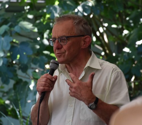 Der Landtagsabgeordnete des Kreis Lindau und Vizepräsident im Landtag, Thomas Gehring, erläuterte die beharrliche und sachorientierte Arbeit der Landtagsfraktion und die Vizepräsidentin des Bezirkstags, Barbara Holzmann, die Bemühungen um Inklusion und eine bessere psychiatrische Versorgung in Schwaben. Als besonderer Gast kam Romeo Franz, ein bekannter Gipsy-Bandleader (Musik der Roma), Spross einer Sinti-Familie und Mitglied der Grünenfraktion im EU-Parlament. Er war als Kind mit seiner Familie wiederholt auf dem Campingplatz in Zech gewesen und später mit seiner Band mehrfach im Zecher Jazz Club Lindau aufgetreten. Nach einer gemeinsamen musikalischen Einlage mit Second Line berichtete er von den Bemühungen um eine Besserung der schwierigen Lage von Musikerinnen, Musiker Künstlerinnen und Künstlern unter und nach Corona sowie von seinem Besuch der in der Ukraine unter Kriegsbedingungen lebenden Roma, die dort nicht gleichwertig behandelt werden und unter menschenunwürdigen Bedingungen zu überleben versuchen.