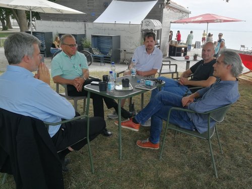 Auf einer Tour durchs Allgäu haben Dieter Janecek, MdB, Koordinator der Bundesregierung für die maritime Wirtschaft und Tourismus und Thomas Gehring, Landtagsabgeordneter und Landtagsvizepräsident Lindau besucht. Getroffen haben sie dort Carsten Holz, Geschäftsführer der Lindauer Tourismus- und Kongress-GmbH, Marc Hübler, Hotelier, CSU-Stadtrat und Mobilitätsbeauftragter und Daniel Obermayr, Lokale Agenda 21 und Stadtrat Bunte Liste zu einem Gespräch in lockerer Atmosphäre.
