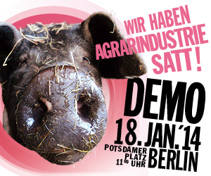 Die Demonstration startet am Samstag, den 18. Januar 2014 in Berlin um 11:00 Uhr mit einer Auftaktkundgebung auf dem Potsdamer Platz. Danach geht die Demo-Route vorbei am Bundesrat und dem Landwirtschaftsministerium. bis vor das Bundeskanzleramt, wo dann die Abschlusskundgebung stattfindet. Sowohl am Potsdamer Platz als auch bei der Abschlusskundgebung werden Infostände aufgebaut sein. Programm und viele andere Infos findet Ihr unter www.wir-haben-es-satt.de.