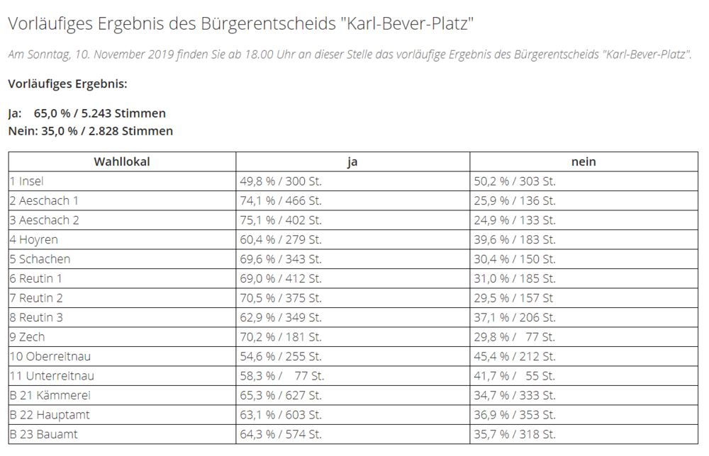 Heute wurde in Lindau der von uns unterstützte Bürgerentscheid “Karl-Bever-Platz” abgestimmt.