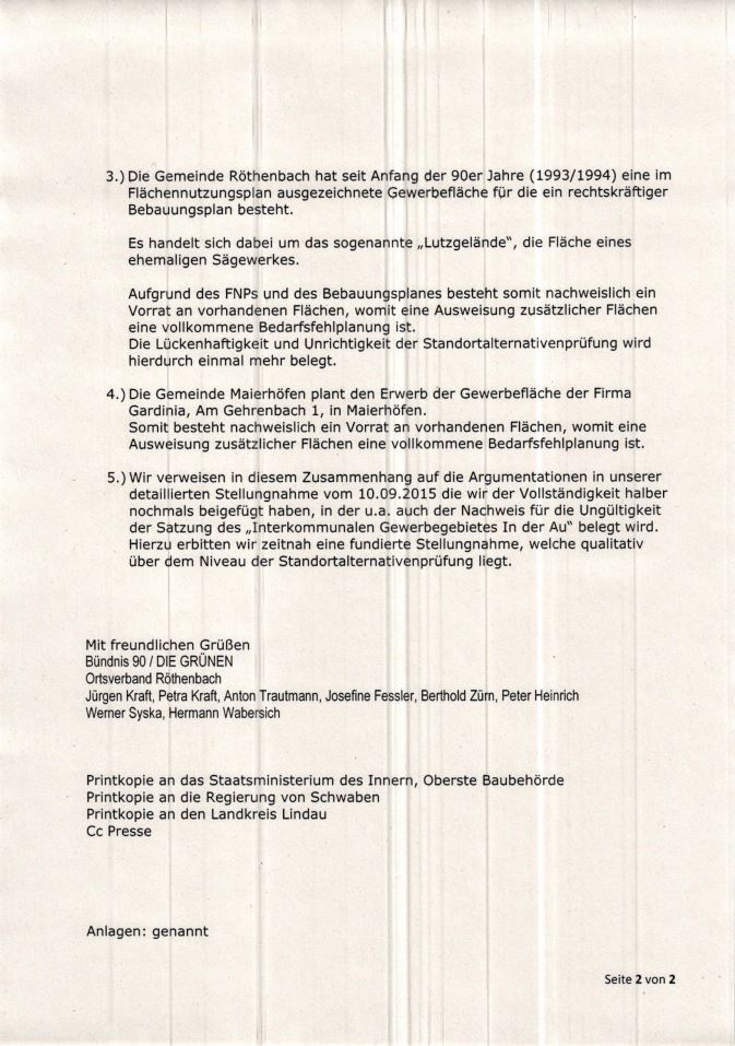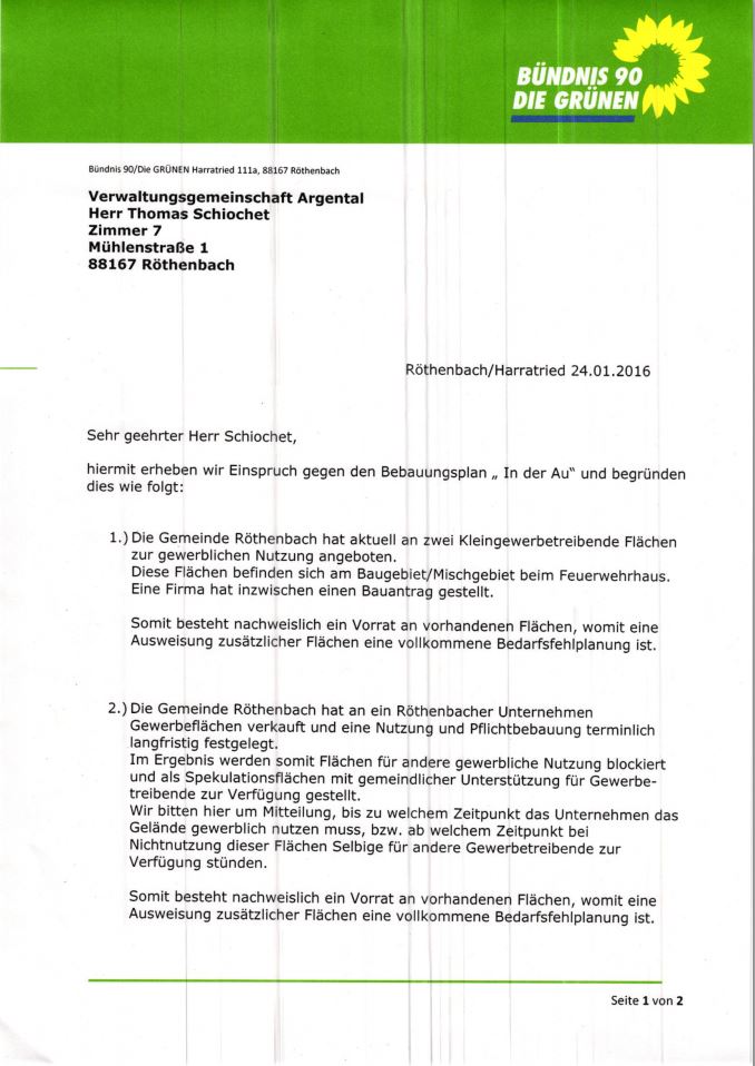 Der Ortsverband Röthenbach hat erneut Einspruch gegen den Bebauungsplan “In der Au” eingelegt:
