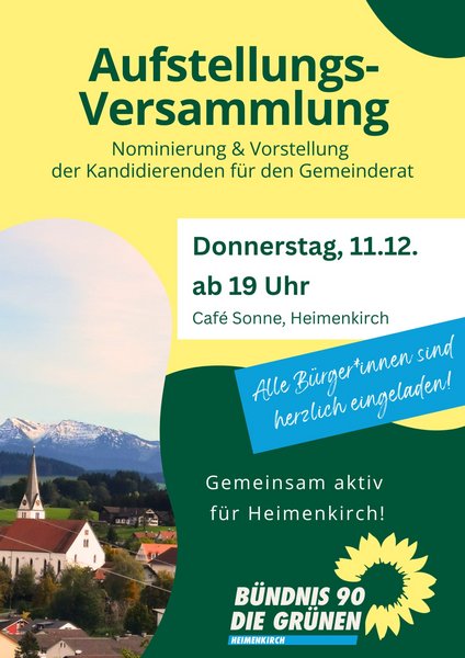 Aufstellung einer Gemeinderatsliste zur Kommunalwahl 2026 in der Gemeinde Röthenbach am Montag, den 15.12.2025 um 20.00 Uhr im Pfarrheim, Röthenbach Liebe Grüne in [...]