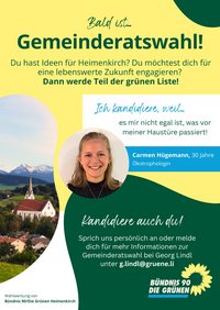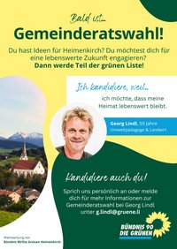 Ich engagiere mich kommunalpolitisch, um der Verbreitung von Fake News zu Klimathemen sowie der zunehmenden Fremdenfeindlichkeit und Polarisierung etwas entgegenzusetzen. Ich möchte die Unsicherheit und Sorgen der Menschen ernst nehmen und mich für ein gutes Zusammenleben in Heimenkirch stark machen. Dazu gehört für mich ein lebenswertes und bezahlbares Wohnumfeld, eine intakte Natur und ein lebendiges Dorfleben.