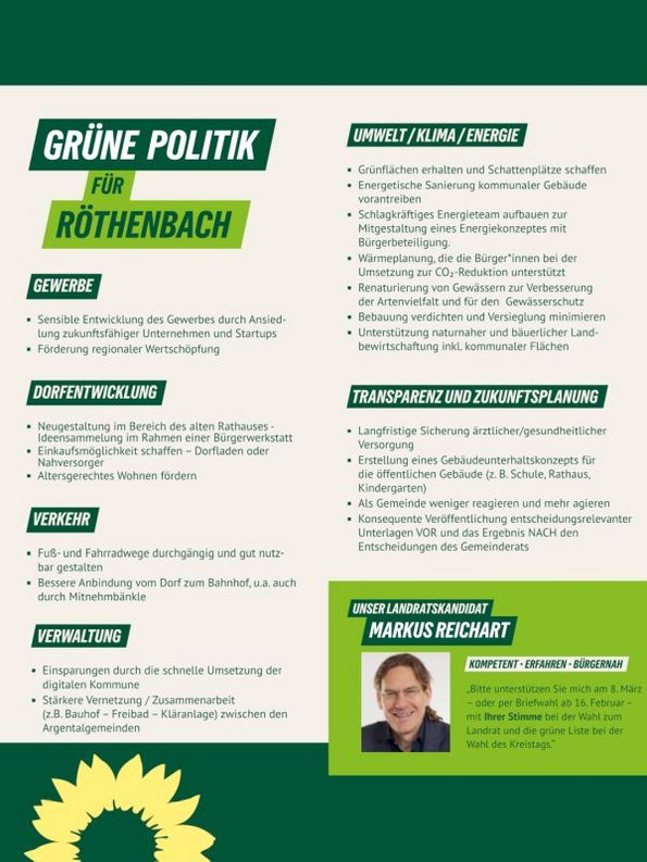 Aktueller Flyer Kommunalwahl 2026 Grüne Röthenbach